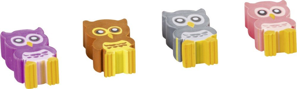 Gommen in de vorm van schattige steenuiltjes. Bij aankoop wordt 1 stuk toegevoegd, willekeurige kleur.