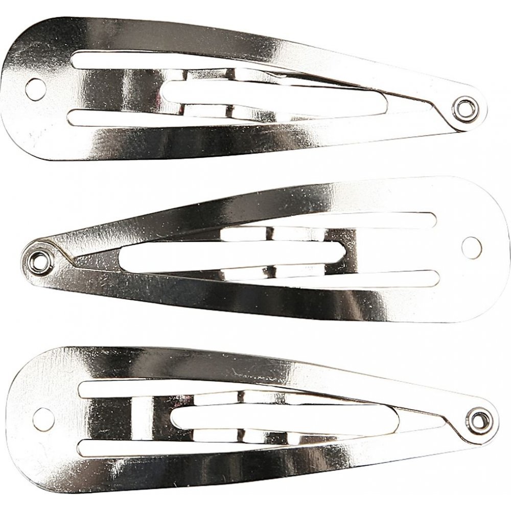 Haarclips/gespclips van glanzend metaal met gaten voor parelversieringen.