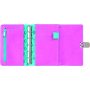 Aplan Zak van 10,5 x 14 cm met motief "Candy" in synthetisch leer. De map bevat ringmechanisme, compleet systeem voor kalendergedeelte en formulieren, pennenhouder, muntvakje, plaats voor kaarten, liniaal, index 1-5 en een index voor A-Z.