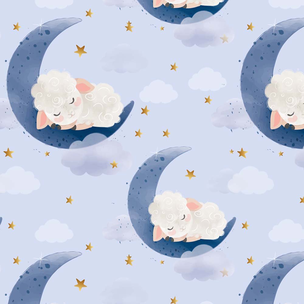 Tricot met patroon 150 cm - Lam op wolkenblauw